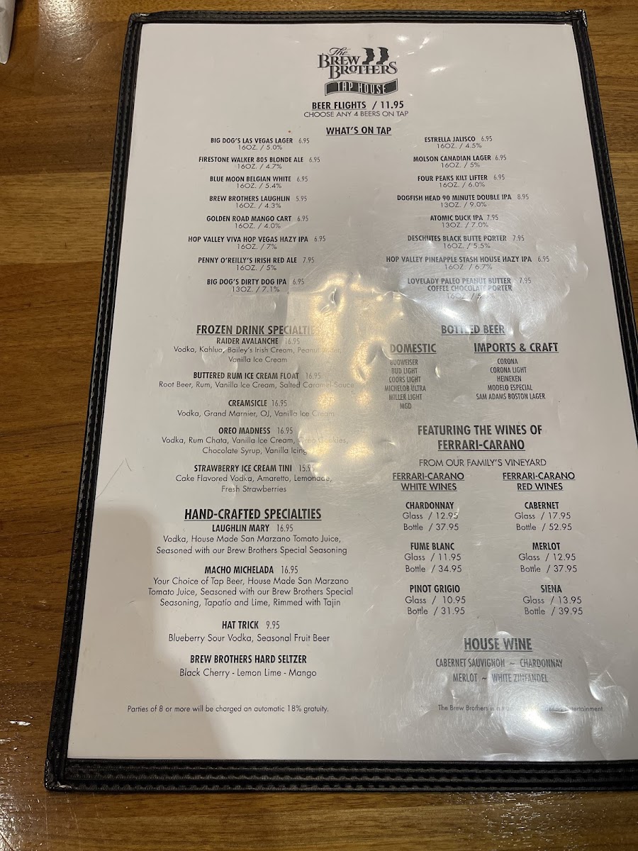 Beyond the savory dishes, The Brew Brothers is known for its delightful array of frozen drink specialties like the Buttered Rum Ice Cream Float and the enticing Oreo Madness, perfect for cooling down after a day under the Nevada sun. Pair your meal with an impressive selection of craft beers—whether you prefer a classic Corona or a locally loved Sam Adams Boston Lager, they have something for every palate.